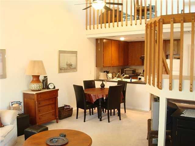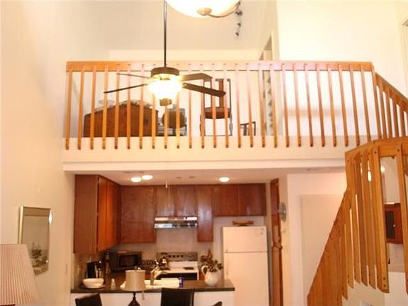Great 2 story condo in a private, gated community offers 2 masters - 1 up & 1 down. Open floor plan with spacious living/dining area, fireplace, & high ceilings. Loft space upstairs with built-in shelving may be used as an office/study. Private patio & community pool. Updates throughout include: vanities, lighting, fixtures, ceiling fans, backsplash, and tile in heavy traffic areas. Wonderful natural lighting and fresh interior paint. Location is convenient to shopping, dining, and Austin lifestyle.