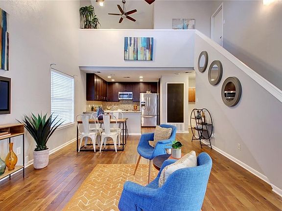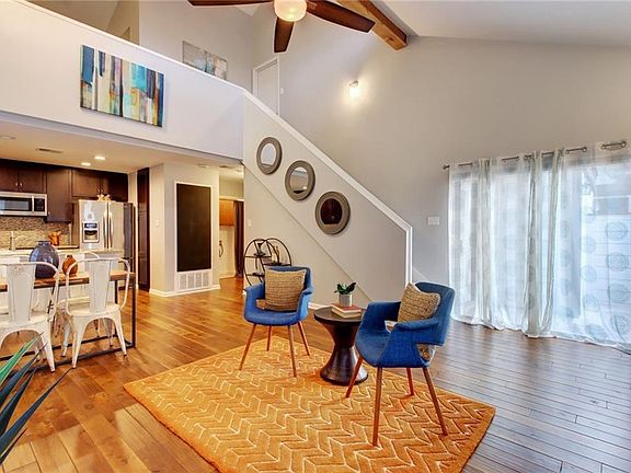 Light & bright end unit in Brandywine Condominiums! This 2-story home features a loft/office area, gorgeous wood floors, granite countertops, stainless appliances (fridge conveys), upgraded light fixtures, newer HVAC, recent carpet upstairs and recent paint. Ample parking and community pool. HOA includes basic cable, water, trash and common area maintenance. Incredibly convenient location near 183 and North Burnet shops and restaurants. Private patio and quiet complex at a great price point for 78757!