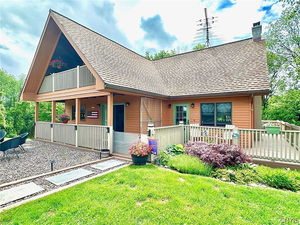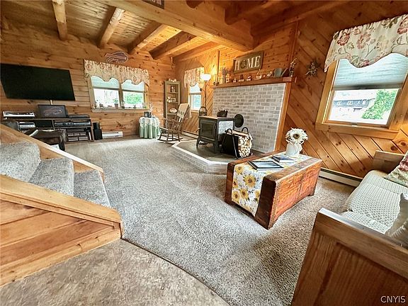 This Contemporary home focuses on spectacular design choices, low maintenance features, and a location you cant deny is fabulous. The panoramic views in a prime school district makes this home a front runner in the market. This exquisite 3 bedroom, 2 bathroom (one on each floor) residence offers a perfect blend of design with new paint, new appliances, new landscaping, new flooring, new carpeting, new exterior paint and more. The harmonious blend from the living room to the wrap around deck give you a great space for relaxation, views, entertaining, and nature. Heat with one of the two woodstoves or the baseboard heat, your choice. Home doubles as a ranch as there is a first floor bedroom and full bath. Meticulously kept and ready for the next buyer.