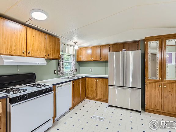 One of the nicest lots in this beautifully maintained 55+ community with tall cottonwood trees lining the backyard providing privacy and shade. ONE car attached garage, hobby room, covered & secure entrance way. No shoveling steps here. All appliances included! New roof, skirting, insulation, heat tape and exterior paint. Conveniently located blocks from Wal-Mart, Sam's, Home Depot, Mckee Hospital and restaurants. The lot rent is $1,375, max 2pets 20lbs, minimum credit score is 650, app fee is $40.00, income 2times the monthly lot rent. fences and sheds okay with park approval.