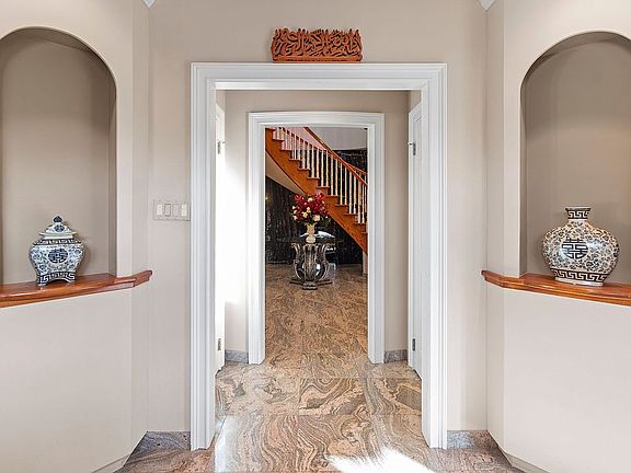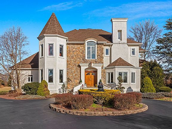 If you are looking for a truly unique property, look no further! The lovely chateaus of France were the inspiration for this beautiful custom home. Special touches and amenities throughout include a grand, inviting private entrance, polished granite floors with radiant heat, a stunning floor-to-ceiling imported black marble fireplace in the family room that is the focal point of the main level, many large windows and a graceful curved staircase surrounding an exquisite Asfour crystal chandelier adorning the dome. Workmanship of the highest quality abounds. Private guest suite on the third floor, including bedroom, bathroom, and sitting area. The second level has four bedrooms, including one with a private balcony overlooking the lush backyard, and two baths, and the owner's suite includes a unique sitting area in the turret, and floor to ceiling marble tiles in the en suite bathroom. The lower level is finished and includes a full kitchen, bath and separate entrance, which can be used as an au pair or in-law suite. The main level is arranged in a comfortable, open floor plan perfect for entertaining. This lovely home is located on 2.5 acres on a nicely landscaped private lot with a new paver patio and walkway. Additional features include a 6 zone hybrid HVAC system with heat pumps and a top of the line Buderus oil backup. It also has a newer roof, new carpeting, beautiful hardwood floors in the living room, dining room, and step down family room. The kitchen has an oversized twin Subzero refrigerator/freezer, new Jenn-Air downdraft dual-fuel range and new Bosch dishwasher. This property is within easy access to Princeton and Philadelphia. It is a short ride to the Trenton train station to allow easy commuting to New York.