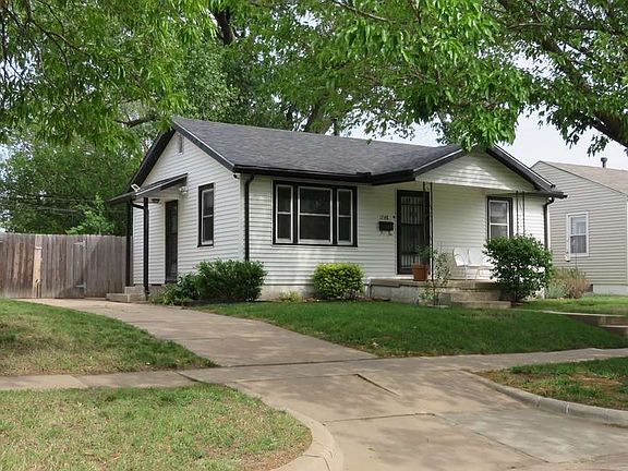 DON'T MISS THIS HOME!! PRICE REDUCTION AGAIN..SELLER SAYS GET IT SOLD....PRICED BELOW TAX APPRAISAL VALUE......SOME LUCKY BUYER IS GOING TO GET A GREAT HOME AT THIS PRICE AND IN SUCH GOOD CONDITION! THE BIG STUFF HAS ALREADY BEEN DONE! GREAT SPACE FOR THE MONEY! BASEMENT FLOORS HAVE BEEN PAINTED MAY 2015, GIVING YOU ALMOST A 176 SQ FT FAMILY ROOM PLUS TWO OTHER BONUS ROOMS TO USE AS NON CONFORMING BEDROOMS OR YOUR CHOICE OF USE. BASEMENT WALL CRACKS HAVE BEEN GROUND, FILLED AND WALLS SEALED WITH WATER-TITE SEPT 2015. Must see to appreciate the space! Would be easy to finish out walls OR just decorate as they are, clean -neat - cracks professionally filled -freshly painted. MOVE RIGHT IN! Very well maintained home that is neat and clean, very large yard with shade and great space for garden. The yard is completely fenced with pretty limestone lined garden bed. Great place for dogs and kids to enjoy. You can add additional shed in back, garage area with work shed, sport court....you name it. Back yard is plentiful. New roof and siding were installed 2009. Covered front AND side porch! Huge tree in front yard for nice afternoon shade. Wood floors in living room and hallway. Two nice size bedrooms with carpet. EVERY WINDOW ARE NEWER TILT IN WINDOWS THAT MAKE FOR EASY CLEANING, newer black Kenmore appliances: Fridge 2013, Kenmore elite dishwasher 2008, Kenmore smooth top stove 2005. Kitchen has solid oak cabinets that are in pristine condition and displayed with track lighting in ceiling for extra light if needed. Bathroom was updated in 2010 with tile floor and new vanity. New water heater 2014. There are built in drawers and shelving in the bedroom hallway. Eating space in kitchen for table. On the way to the basement is a side door to the driveway and gate to back yard. The unfinished basement has lots of room to turn into a playroom/office/storage or office. Three separate unfinished bonus rooms in basement. Built in storage under the stairs. There is a nice side covered entrance to the home that leads to kitchen or basement. Makes for easy unloading of groceries or other items. The gate to the back yard is a double gate with room to park a vehicle behind gate if needed....plenty of room to build a garage if you wish as the back yard is very large with mature trees for nice shade. Dirt work done around home by current owner. The location is a plus to St Joe/Via Christi, Wichita Mall and W C Clapp Golf Course. Walk to breakfast or dinner as there are restaurants close by as well.