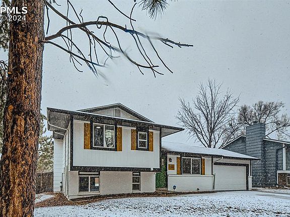 Welcome home to this charming, recently updated tri level home. Upon entering the home, you will notice the recent updates, convenient mud bench entry, luxury vinyl plank floors, and neutral paint color. The front room is currently being used as a dining room, but could easily be enjoyed as a living room, sitting room, so many options! The updated kitchen has beautiful white shaker style cabinetry, glass tile backsplash, stainless steel appliances, and room for a small table if you want to soak in the morning sunlight while enjoying your favorite cup of coffee. The lower level, with views from the kitchen, has newer cozy carpet, a wood burning fireplace, and creates a wonderful entertaining space or relaxation zone for the new owners. The lower level also houses a secondary bedroom (currently being used as an office/library), an updated 3/4 bathroom with tile shower, and an easily accessible laundry area. The upper level includes 2 ample sized bedrooms, one with shared entry to the updated full bathroom that is also accessible from the hallway. The master bedroom has 2 large closets. In addition to the tasteful and modern updates, this home also has a recently added radon mitigation system, furnace, central A/C, and an updated electrical panel. Move right in and enjoy the nearby hiking trails, shopping, and access to all Colorado Springs has to offer. The exterior has been newly painted, and the 2 car attached garage and wood shutters add to this home's curb appeal. If you don't want to leave home, just sit back and take in the mountain views from the large, fenced backyard. Hurry! This gorgeous home won't last long! Schedule your showing today!
