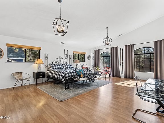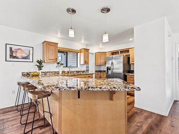 Discover your perfect mountain retreat in Flagstaff! This updated, fully furnished home has a successful vacation rental history & is just two hours from Phoenix. Enjoy all four seasons with fall color, skiing, hiking & endless outdoor fun! Spacious decks & patios for indoor/outdoor living w/ a huge back yard perfect for entertaining. The open floor plan features a kitchen w/granite counters, gas range, walk-through pantry & abundant cabinets. Oversized primary suite easily fits a king bed & has French doors to a private deck, plus the primary bath has double sinks & walk-in closet. A large secondary bedroom offers flex space. No HOA, central A/C, new roof & appliances plus tons of storage space. A quiet neighborhood near parks, trails, shopping & dining. Turn-key and ready to enjoy!