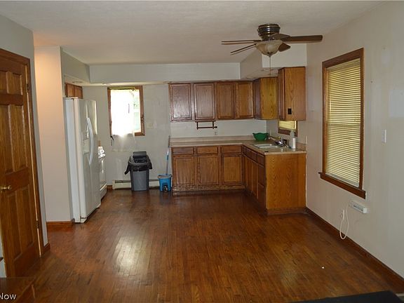 Welcome home to this Ashtabula Harbor bungalow! Enter the front door to fantastic hardwood floors and an open floor plan kitchen, dining, and family room area. There is one bedroom, laundry, and a half bath down a few stairs from the kitchen. There are two good size bedrooms upstairs and a remodeled full bathroom. There are two two-car garages on the property. The front garage has an electric heater and would be perfect for your shop or storage for all of your toys. The rear garage can be accessed by driving around the side of the house and is also in great condition. There are a few sheds on the property for additional storage so you can save the garage space for the good stuff. This home is in an estate, but has already been approved in probate and can be sold/closed at any time. The seller is not making any repairs and this home is being sold AS-IS.