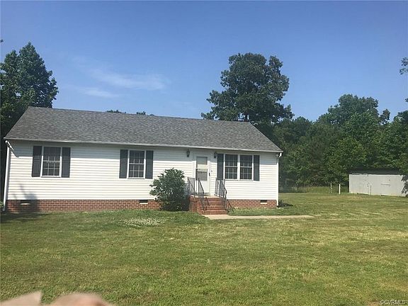 Vinyl sided rancher w brick foundation on 5 acres w/ two barns. Bring the horses! 3 pastures. Very quiet & private. About 7 miles east of I-95/Doswell exit. New roof, well insulated, efficient & clean. Fresh paint. New floor in kitchen. No HOA fees or restrictions. The barns and fencing sell as is. One barn has 4 stalls, a storage room and a loft. The smaller barn has 3 stalls and a workspace. There is power and lights in both barns. House sits well back off the road with about 3 acres of pasture in front. A mix of smaller pasture and woods behind the house and barns.