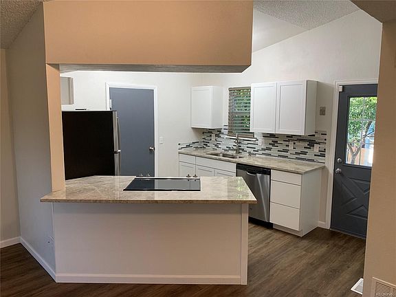 Spectacular Remodel Outstanding Quality Fixtures and Workmanship! New Kitchen w Custom Granite, High End Vinyl Plank Flooring, New Carpeting, New Bathroom, New Windows, New Roof and Gutters, New Exterior Paint, Newer Furnace and Hot Water Heater, Utility Shed, Fenced Yard, Cherry Creek Schools, Close to Shopping and All Amenities... An artesian studio was created by sealing the garage door. Easily and inexpensively converts back to functioning garage...Must See To Appreciate!
