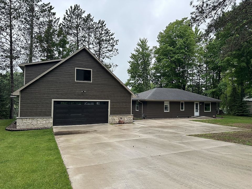 Welcome to your dream waterfront retreat on the Townsend flowage with 171' of sandy shores on an outstanding lot with gorgeous views and stunning sunsets. This beautifully updated property offers the perfect blend of modern style and serene lakeside living. Tastefully decorated throughout with Vinyl plank flooring, newer windows, doors, C/A, and so much more! You will be impressed with the additional 1927 sq ft of living space in the 32x36 top-of-the-line heated garage with glass overhead door, wet bar with granite counters and custom cabinets, epoxy flooring throughout, and 1/2 bath. The upper level offers a 31x25 bonus room that is finished with tongue and groove vaulted ceilings. Combined 3000+ sq ft of living/entertaining space! Easy access to ATV/UTV/snowmobile trails.