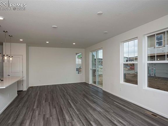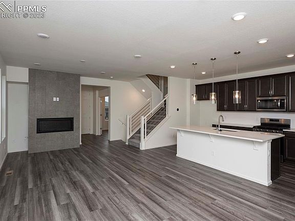 This incredible two-story home on an end homesite with a walkway and landscaping between you and the building neighbor, with a front porch that faces north features an open floor plan with 9-ft. first-floor ceilings and spacious great room. The roomy kitchen with an over-sized island for extra seating, features 42-in. Timberlake Tahoe Standard Overlay Recessed cabinets in Slate, Ethereal White Quartz countertops in kitchen with subway white tile backsplash and Antarctica Corian in bathrooms and Whirlpool stainless steel appliances including gas range, microwave and dishwasher. Having a den on the main level gives you that extra space for an office, playroom or library. Upstairs, this home includes a loft giving you one more area for the expanding in. The chore of laundry will be so much easier with the convenience of the second-floor laundry room. A Modern horizontal stair rail system completes the modern feel of the home. The spacious primary suite boasts a large walk-in closet and the bath showcases a dual-sink vanity. Finishing touches include upgraded Shaw® carpeting in soft taupe at bedrooms, low-maintenance plank flooring at entry, kitchen, dining nook, living room and great room, upstairs loft, and hallway. Generation Lighting fixtures, ceiling fans at living room and bedrooms, Sherwin-Williams® low-VOC interior paint in Alabaster, an 8-ft. front door and Wi-Fi smart thermostat. The finished basement including a recreation room, bedroom and bathroom allows you to have a separate living area for family or guest. Relax outdoors with your fenced in side yard that sitting next to an open area, giving you privacy.