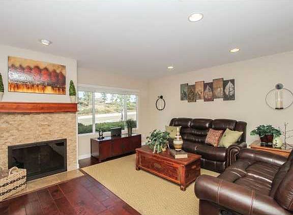 This Amazing Playmor unit is a must see! Completely remodeled 2014. This 3 bedrooms & 2.5 baths end unit and feels like single family home. Home features: hardwood floors, upgraded kitchen and baths. newer dual pane windows, roof, balcony, paint, lighting, AC, furnace, electrical panel, and stacked stone fireplace. Community pools, spa, tennis, playground. Walking distance to shopping, restaurants, library. EZ freeway access. Great Poway Schools.