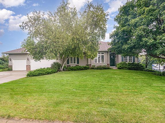 .61 acre private lot in Lakeville! Open floor plan rambler with high ceilings and many quality finishes. All 4 bedrooms are spacious with large closets. The owners suite has two walk-in closets and a 3/4 bath. The main living area has newer acacia walnut hardwood floors and a full wall of windows overlooking the backyard. First floor office with French doors. The kitchen has stainless steel appliances, a center island, corner sink and windows, and an abundance of cabinets and countertops. The basement has recently been painted with newer carpeting and includes two spacious bedrooms, a large bathroom, and great family room and rec room for everyone to enjoy. The walk-out leads to the spacious patio and private, beautifully landscaped backyard with boulders, and wild grass. Enjoy summer nights entertaining or relaxing with the wildlife and birds. In-ground sprinkler system. The neighborhood is quiet and close to area schools, parks, Lake Marion, downtown Lakeville, area restaurants and shops, and provides easy access to 35W and Cedar Ave. The community of Lakeville offers community events and celebrations for the whole family. Don't miss the opportunity to make this spacious rambler your new home. October 15th closing preferred. One year Home Warranty included for the buyer.