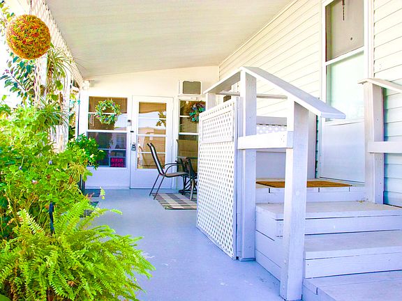 Pride of ownership! Come see this well taken care of home. This home offers 2 bedrooms, 2 bathrooms + office area with a large air conditioned, tiled Florida Room great for entertaining. If you want a breeze step out onto the front porch and enjoy greenery and BBQ area. The home has brand new flooring in the main areas, bathroom exhaust fans put in, Roof recoated in 2023, brand new AC duct work under the home with a new Isolated vapor barrier under the home along with a trenched sump pump. In the back of the Florida room is a laundry/ workshop area that gains access to the fenced back yard. The large kitchen offers a lit pantry, island cooktop side by side refrigerator with bottom freezer drawer. Master has walk in closet with dual sinks and large vanity.