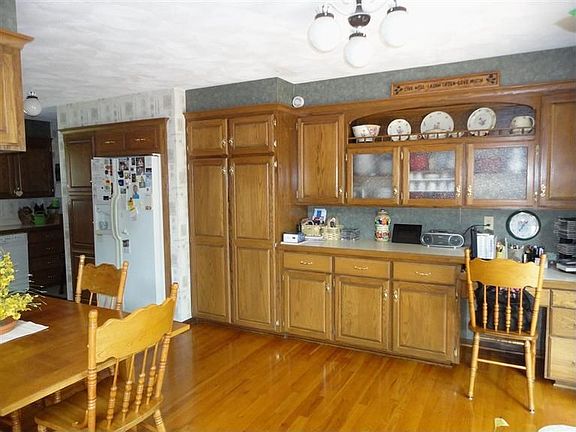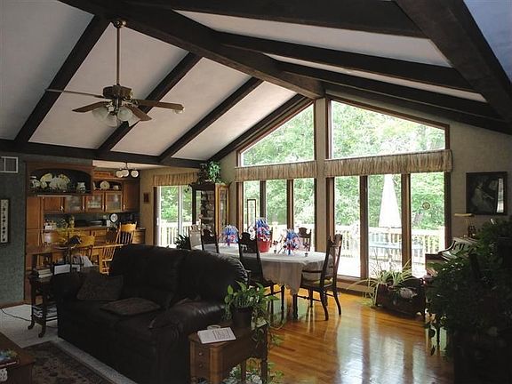 Fabulous main level rancher with open floor plan & lots of updates: New heat pump 2005, gutters 2009, 16x27 trex deck 2008, 2 new patio doors & front door 2010, new water heater 2009. Vaulted ceiling in living room & dining room with wall of windows overlooking wooded backyard. Updated kitchen with abundance of custom cabientry including pantry, desk & hardwood floors. Large master with sitting area, walk in closet plus 2nd closet. Double closets in all bedrooms. Gas fireplace up & WB fireplace down. Workshop down under attached garage 24'3x23'6. Very appealing floor plan. Seller offering $3,000 allowance to remove wallpaper and paint.