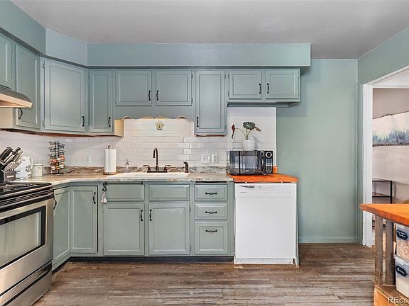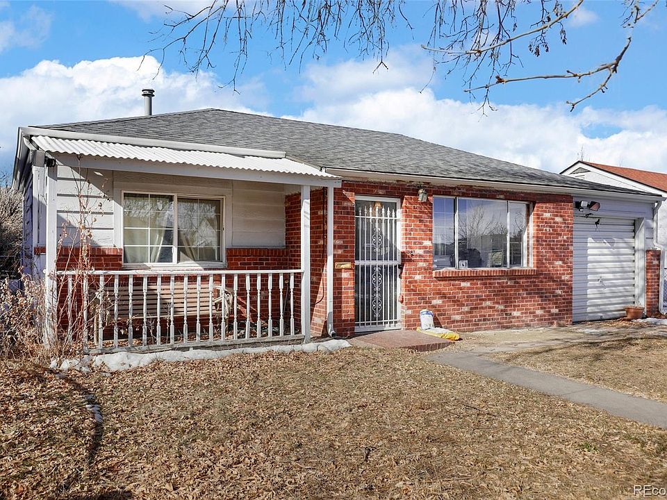 Don't miss this charming 1940s ranch home that pairs thoughtful updates with an unbeatable location! A classic brick exterior, fenced front yard with a mature tree, and a welcoming front porch provide a great first impression. The original hardwood floors run throughout the interior and are accented by great natural light and updated paint in a modern color scheme. Recently refreshed, the sizable kitchen delights with lovely new granite countertops, a classic subway tile backsplash, and refinished cabinets. Two sunny bedrooms share a beautifully remodeled bathroom that is highlighted by beadboard wainscoting, stylish black hardware, and lovely Herringbone tiled tub/shower with a rainfall showerhead. Ideal for urban homesteaders, the sprawling fenced backyard is bordered by gorgeous mature lilac bushes and includes a large covered porch, raised garden beds, a storage shed, and a chicken coop made to fit 6 hens and a corresponding permit (the max number of chickens allowed in Aurora is 6). Other noteworthy features include a new septic line and an attached garage for added storage. Wonderful location in a welcoming neighborhood that is blocks away from the Stanley Marketplace, parks, schools, miles of trails, the UC Health/Anschutz/VA Hospital Campus, and all of the shopping, entertainment, and dining options found along vibrant Colfax. Walk Score of 72!