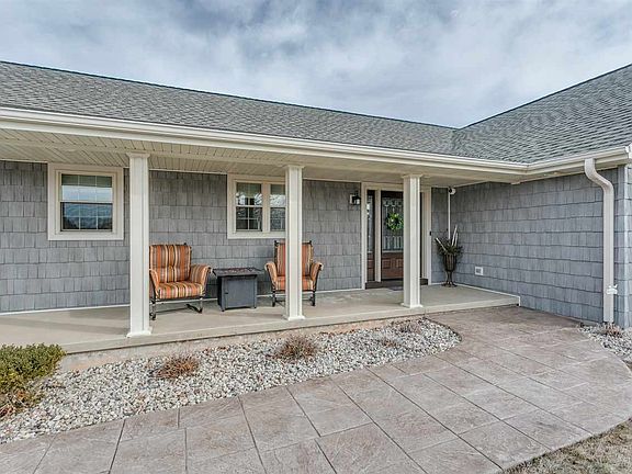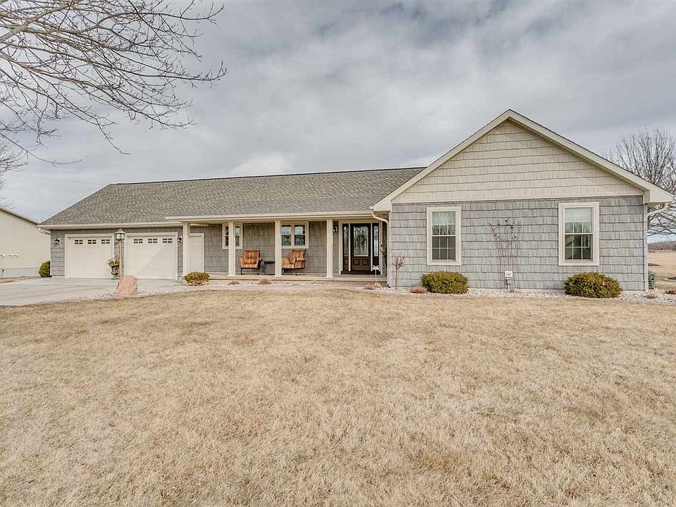This stunning open-concept ranch offers many updates and is sitting on a gorgeous 6.2 acres of land. This is a one-of-a-kind, gorgeous home with a unique layout! Spacious kitchen/dinette features an abundance of maple cabinetry with newer quartz countertops, snack bar, newer appliances, and built-in circular island table. Enjoy relaxing in your beautiful living room with a custom stone wood burning fireplace with huge windows to your backyard and enjoy the spectacular view! The main level also features 3 bedrooms, 2 full bathrooms and mudroom featuring beautiful maple cabinets and a built-in locker. Master suite with private bathroom and nice walk-in closet. The finished lower is perfect for entertaining or just providing an escape, including a large family room with a gas fireplace, a fourth bedroom that has large sliding door closet and access to a full bathroom. 1st floor laundry, tons of windows with natural lighting. 2.5 stall garage with basement access, beautiful, epoxied floors, garage heater and lots of storage. In addition to this beautiful home and lot enjoy a magnificent, detached heated garage that is used as a workshop, office, and a nail salon. Half bath, boiler heated garage, and heated floors are just a few extra features. Don't wait, this property will not last!!