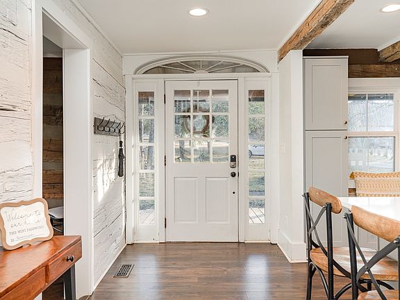 Charming log cabin with a perfect blend of rustic charm and modern elegance! As you step inside, you'll be greeted by soaring high ceilings and exposed beams, creating a warm and inviting atmosphere throughout. The spacious kitchen is a true highlight, featuring a breakfast bar, farm sink, subway tile backsplash, and sleek stainless steel appliances, making it a dream for any home chef. The separate dining room offers a perfect space for meals and gatherings. The living room is centered around a stunning fireplace, creating a cozy focal point for the space, ideal for chilly evenings. The bathrooms continue the modern theme with subway tile in the showers, providing a clean and timeless look that complements the home's overall design. Enjoy spacious bedrooms, plus a bonus room (currently being used as a 4th bedroom) with a private balcony, perfect for relaxing or taking in the views. Step outside to a large backyard, offering plenty of space for outdoor entertainment including a fire pit, and hot tub. Simply unwinding in your own peaceful retreat. This beautiful home effortlessly combines rustic beauty with modern comforts—perfect for anyone looking for a serene escape with all the amenities!