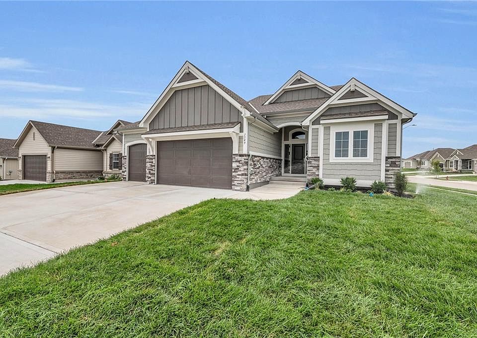 *Furnished Model!* Furniture will not stay with property* The Mira by SAB Homes is a fabulous reverse plan that everyone immediately falls in love with! Estimated finish date of the end of July 2024. This villa has 3BR and 3 Full Baths.Vaulted Ceilings in the light filled Great Room and a Covered Patio  & deck off the back of the home provide many options for entertaining or relaxing. The Great Room is wide open to the Kitchen and Dining area and features a built-in cabinet adjacent to the stone fireplace. When your day comes to an end, the Primary Suite offers modern amenities such as a fully tiled shower, Soaker Tub, separate vanities plus separate closets. An additional Bedroom and Full Bathroom are located on the main level. The Laundry room, near the primary bedroom, offers a cabinet with folding area and sink. The Lower Level features a large Recreation Room with a wet bar, daylight windows and walks out to a patio. One additional Bedroom with Walk-in Closet and a 3rd full bathroom complete the finished space. The lower level also provides ample unfinished storage space & an unfinished 4th bedroom. Cadence Villas homeowners also pay an annual HOA fee of $565. Taxes, Rooms Sizes, sq footage & Lot size are approximate. A Hunt Midwest Maintenance Provided Community.