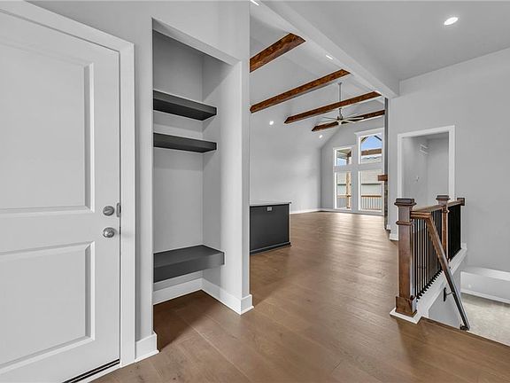 - Ceiling Fan(s), Custom Cabinets, Kitchen Island, Painted Cabinets, Pantry, Stained Cabinets, Vaulted Ceiling(s), Walk-In Closet(s)