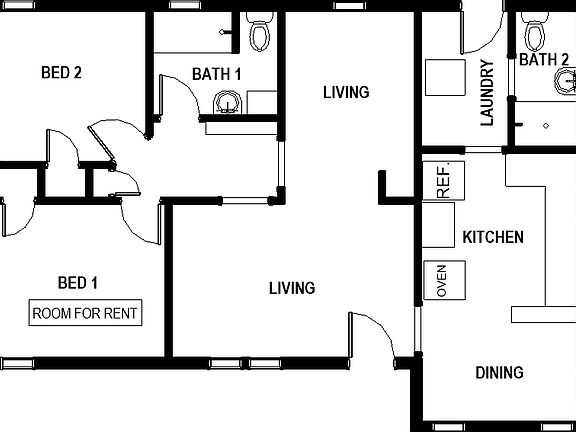Private bedroom for rent with owner paid utilities. Water, electric, gas, trash and internet included. Entirely new second bathroom, just completed. Good, gracious, responsible and friendly roommates at this 950 sq ft single family house. There are 2 professional male roommates in the other two private bedrooms. They are easy-going, professional men, who would like to share the rent with someone who cleans up after themselves and is amiable. The 2 full bathrooms are shared along with the full kitchen, laundry, dining area, living room, patio, backyard and front yard. The house is fully furnished with kitchen utensils and appliances and couches and a dining table. The bedroom is not furnished. Walker/biker friendly with buses nearby. Applicant Requirements: No Smoking, no pets, no assaults on background check, a current job making more than $2100 income before tax. 6 month lease. 6 month lease Owner paid utilities: Water, Electric, Gas, Trash and Internet.