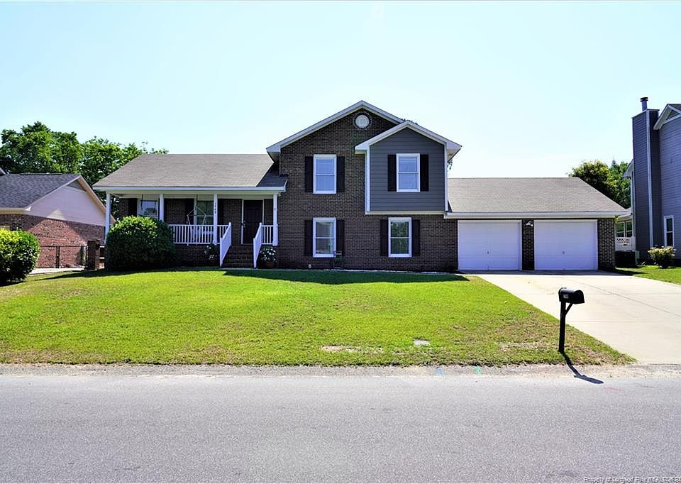 Amazing Tri-level Home in the Jack Britt School District, beautiful laminate flooring in the formal living room, formal dining room, kitchen. foyer and sunken great room which has a fireplace, 4 bedrooms total with 2 master suites, one up and one down which would be great for an in-law suite or the growing teen, three full bathrooms, rocking chair front porch, nice backyard with privacy fence and extended patio with pergola for relaxing evenings. Manicured flower beds make for nice curb appeal. Plus double car garage!! Just minutes to Bragg, shopping and the schools. Security system with ring door bell and cameras stay. A definite must see home!!!