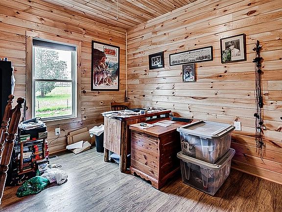 Looking for a small farm, here’s your place. Approx. 25 acres, mostly pastured, 2 Bedroom 1 1/2 baths home with beautiful pine and cedar tongue in grooved wood walls and ceilings thru out. Very private, lots of wild life and beautiful pasture land to enjoy while resting on a large covered porch with stamped concrete flooring. Double carport attached with 10’ ceilings, large concrete patio, beautiful stream bordering the property. A large old hay barn and milk barn on the property as well. Storage building with power and a 20x20 metal tractor shed with a small additional shed attached.