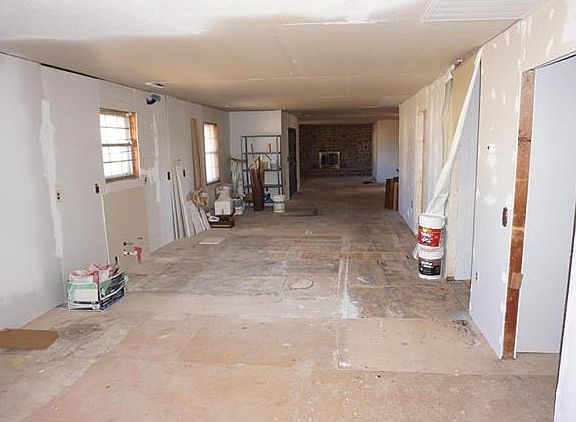 Raised ranch, stone front. Needs work to finish main level. But a huge home, 2052 on main level, and 500 +/- lower level. Kitchen, walk out lower level w/Family Rm. 2 car garage, bath. Main level needs flooring & Kitchen to be installed. Covered porch & patio. Could be 3 bed on main level if closets were put in. Sold AS IS.