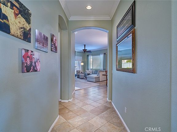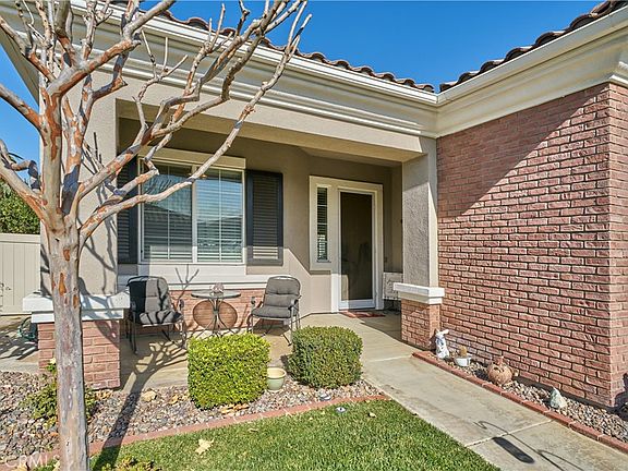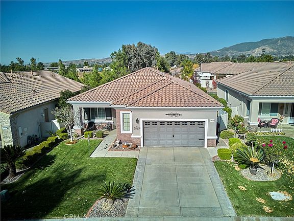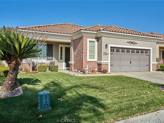 Spectacular backyard on the golf course! "Trillion" home in Solera, a 55+ gated community in Beaumont. Features include: Crown Molding; Extended Patio Cover; Corian kitchen countertops; Gas fireplace in living room; 1,687 Sq.Ft. of living area with two bedrooms, two full bathrooms and a den/office. Primary bath has both a walk-in shower and a tub. Two car garage has an extra nook area for more storage. Enjoy living in a peaceful 24-hour guard gated community. The Solera clubhouse has an indoor walking track, gym/fitness center, tennis courts, pool/spa, library, bocce ball court, banquet/meeting/card rooms and pool tables. Just off the 10 freeway with short drives to Cabazon outlet shopping, Morongo Casino, golf courses and Palm Springs. Welcome to the good life!