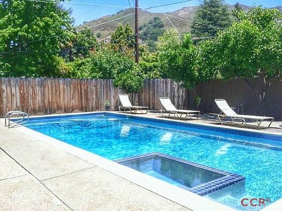 Located in one of the most exclusive and highly sought-after neighborhoods just a short walk from downtown and SLO High School. This is a tight-knit community where quarterly happy hours, friendly neighbors, and an annual neighborhood garage sale create a unique experience and high quality of living. The Banana Belt micro-climate provides for generally warmer temperatures than the rest of town. There is no through traffic here due to there only being one way in and out of the community making the streets that much safer for residents. Features of this 3 bedroom and 2 bathroom home include oak hardwood floors, formal dining room, kitchen with breakfast nook, and a separate living room with a wood burning fireplace. Additional details include large picture windows, designer paints, lathe and plaster walls, and crown molding. The backyard has a detached guest house with tile floors, kitchenette, and bathroom adjacent to the pool and jacuzzi.