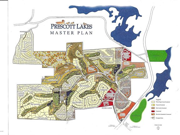 The Calistoga (Augusta) on a corner lot built to customer specs. Upgrades include 3rd garage, MBR extension, upgraded tile, carpet, cabinetry. Great corner lot location. Prescott Lakes is Prescott's premiere golf course community featuring a private 18 hole Hale Irwin championship design course with optional membership. All residents enjoy membership in The Club at Prescott Lakes with numerous amenities including indoor and outdoor pools, outdoor sports courts including pickle ball. HOA amount includes fees for the Club.