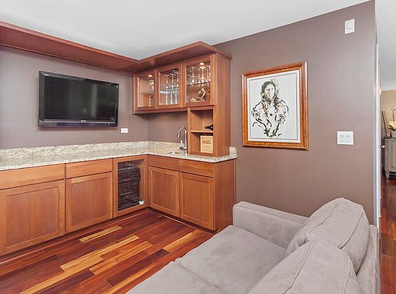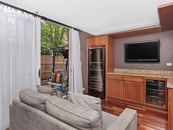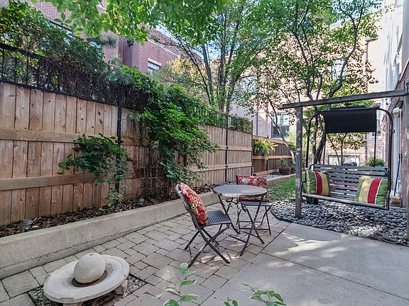 This well appointed Wellington Park townhome is a short walk to BURLEY ELEMENTARY SCHOOL. Enjoy 4 levels of expansive living with bonus roof deck, high end decorative light fixtures, and parking for 2 cars. Entry level features Brazilian wood floors, beautiful chandelier, family room with custom built-in cabinets, wet bar, speaker system and wall mounted TV. Sliding doors lead to a brick paved patio perfect for entertaining. Full bath recently gut rehabbed with walk in shower and heated floors. Second floor is open concept with large living/dining room, kitchen open to dining area, hardwood floors, front deck for grilling. Kitchen has 42" cabinets, center island with waterfall edged granite, pantry storage, washer/dryer. Fireplace has gas logs, new surround tile and hearth. Third level features large master bedroom, full wall of closets, attached bath with double sink granite top vanity, deep whirlpool soaking tub with body spray. Second bedroom has its own adjacent granite bath. The top floor features a large open 19 X 10 room converted to a large home office but could be configured to bedroom 3 and a home office. Recessed LED lighting and decorator propellor ceiling fan. The roof deck is great for large gatherings with water spigot installed for summer gardening. Dual zone HVAC system. Close to Chi Che Park, Jewel, Whole Foods, Target and the EL.