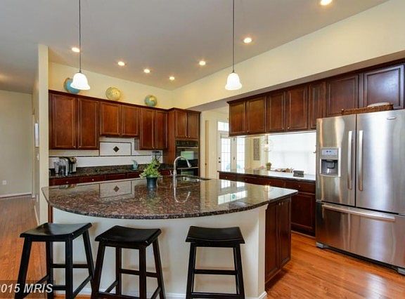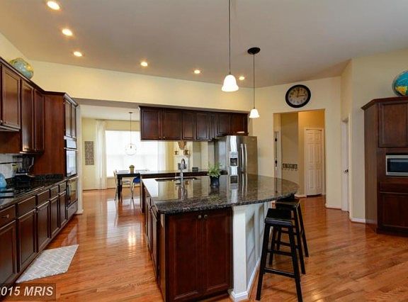 Desirable Citadel Model with front & side wraparound porch, over 4,300 sq ft. Newer finished lower level w/ 5th bedroom, Rec Room, full bath. Upgraded throughout incl. gourmet kitchen with granite & cherry cabinets, hardwoods on main. Main-level study, family rm w/ fireplace off kitchen. Deck and fenced yard. Move-in ready. Great lot facing common area & access to Sleeter Lake in the community.