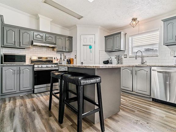 - Description: Gorgeous Kitchen Featuring Island, Tiled Backsplash, And Stainless Steel Appliances!