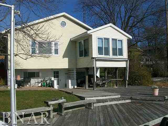 ON LAKE BLOOMINGTON! Great home. You won't believe the closet in one of the bedrooms. Nice kitchen. Upstairs laundry. Large open family room. Walk-out lower level. Good sea wall and dock. Newer decking. All appliances remain. Well insulated. Low utilities. Newer windows. 3 season porch overlooking lake. Priced To Sell!Very large 2 car garage Lots of storage