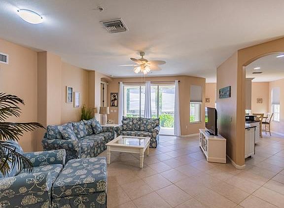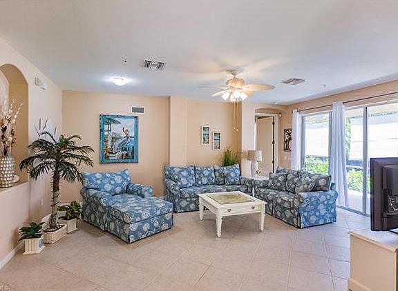 Immaculate First Floor, End Unit Condo in Harmony Pointe at Emerson Square. 3 Bedrooms, 2 Baths, 2 Car Garage with expansive open floor plan featuring diagonal tile floors throughout living areas, beautiful kitchen with granite countertops, stainless steel appliances and pull out cabinets, casual dining area, and generous bedrooms. End Unit with lots of windows and natural light. Master suite with impressive bathroom including 2 raised vanities, garden tub, and tiled shower. Third bedroom/office features French doors open to main living area. Large screened lanai with diagonal tile. Attached 2 car garage. Lots of storage. Centrally located West of 41 and close to shopping, dining, beaches and airport. Walking distance to the clubhouse and community pool.