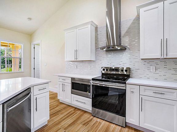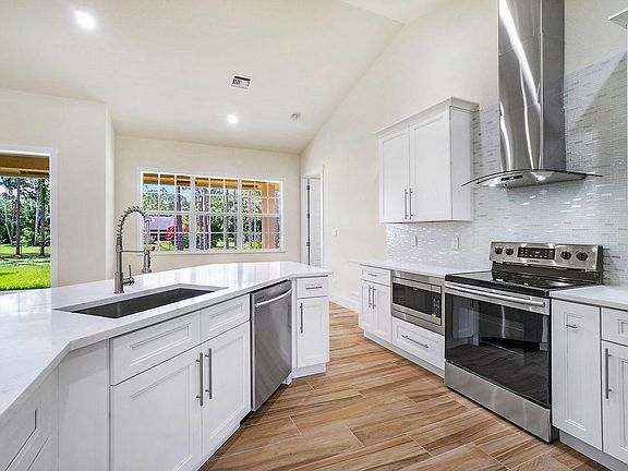 1.37 of an acre. Brand New Construction!.. Impact glass windows. Entering through the double front doors of this beauty brings you into a fabulous open floor plan, soaring vaulted ceilings, spacious foyer, formal dining, family room and breathtaking expansive kitchen that features; 42'' panels wood cabinetry with quartz countertops and tile glass backsplash with a large pantry, stainless steel appliances, deep stainless steel sink, large peninsula island, and breakfast nook. The master suite offers tray ceiling, his and hers walk-in closets and a large master bathroom with granite counter tops, double vanity, roman tub and a walk-in shower. Entering the other side of this fantastic home you will find the two guest bedrooms and den/office.