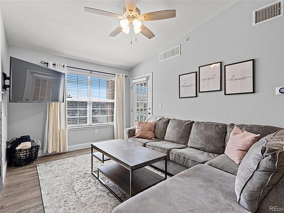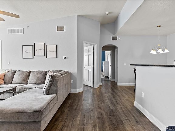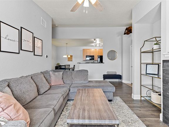 This updated 2 bedroom, 1 bathroom condo is waiting for you make it the perfect home or investment property. The top floor location allows no one above you! Entering the condo you will feel the open style living area with vaulted ceilings, luxury vinyl flooring and natural lights throughout. The eat-in kitchen, which features granite countertops perfect for prepping meals & entertaining leads into the dining area. Off the kitchen you will find the laundry room with storage for extra supplies. The family room has a cozy fireplace which is perfect for cold winter nights and the 2 balconies are perfect for your morning coffee or evening cocktail. The primary bedroom is quite large with a spacious walk-in closet. Don't forget to check out the pool, large workout area, sand volleyball court and so much more. This condo is conveniently located near E-470, shops, restaurants and trails. This one is not to be missed!