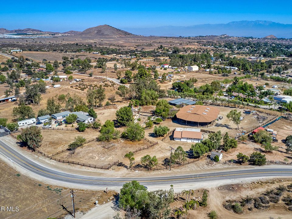 Bring your horses and your toys to this 4.5 acre property in Gavilan Hills. There's plenty of space to spread out and enjoy privacy. Fully fenced with automatic gate. The highlight is the gorgeous 11,000 SF covered and lighted riding arena, paddocks and 12-horse stables. Like cars and trucks? There's enough garage space for 5 vehicles. The house has 3 bedrooms and 2 baths. There is an office building with a full bath, and a half bath outside of the office building. This property also features a utility building with full bath. There's a beautiful pond (currently empty) with wood bridge, rock waterfall and fountain. There's plenty of storage space for equipment, toys, trailers, boats, RVs and motorcycles, as well as room to put in a pool. Recent renovations include new roof on the riding arena, office building and utility building. and new air conditioning in the house. Zoning is residential agricultural. 13 miles to shopping and restaurants at The Crossings and Dos Lagos in Corona and Costco in Lake Elsinore. 9 Miles to Shopping and Restaurants in Woodcrest. Fun fact: Gavilan Hills is one of the few remaining habitats in SoCal of the endangered Quino Checkerspot butterfly.