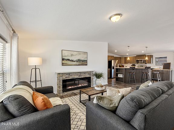 NEVER LIVED IN! Brand new manufactured home. The spacious kitchen has an island that seats 4 , a deep farm sink , upgraded faucet and stainless-steel appliances. This home's open concept split floorplan offers 3 bedrooms and 2 baths plus den. The living room has a beautiful fireplace. The master bathroom has double vanities, large separate tub , shower and seperate toilet. The guest bathroom has a bathtub and double vanities too! The landscaped front yard is on an irrigation system and the backyard is very roomy. 68 miles from Phoenix, 34 miles from Anthem; 42 miles from Sedona; 46 miles from Village of Oak Creek; 24 miles from Prescott Valley and 29 miles from Camp Verde. Affordable year-round living or vacation get-away!!