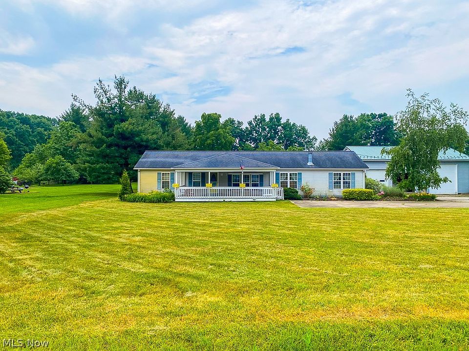 Check out this neat 3/bedroom 2/bath ranch home complete with shop & attached shed, beautiful backyard, and room for pasture and barn on 1.5 acres in the heart of Middlefield Ohio. Conveniently located between Middlefield and Mesopotamia this is an opportunity to downsize or buy a starter home that will not pop up every day. Step onto the inviting front porch and through the front door into a spacious living room bathed in natural light from large windows throughout. Continue through the living room to a cozy dining area that opens into a large Oak kitchen, complete with an island, pantry, and a snug sitting area with a large bookshelf and stone gas fireplace-perfect for winter evenings. Off the kitchen, you'll find a laundry room, a small desk area, and a sliding patio door leading to a generous back deck. To the left of the front door lies the master suite, featuring a large soaker tub and a walk-in closet. Two additional bedrooms and a bathroom complete this 3-bedroom, 2-bathroom home, offering ample closet space throughout. Outside, entertain guests on the newer deck overlooking an amazing backyard with plenty of room for camping and for children to play. The 48’ x 40’ shop is ideal for a hobby shop or garage that is big enough to hold church in as well and includes a 24’ x 24’ attached shed that can easily be converted into a barn for animals. Don’t miss this exciting opportunity—make plans to view this home and attend the auction! Open House Augest-5th from 4:00PM to 6:00 PM