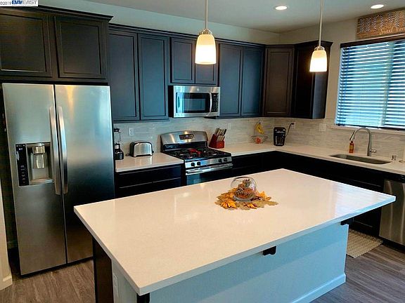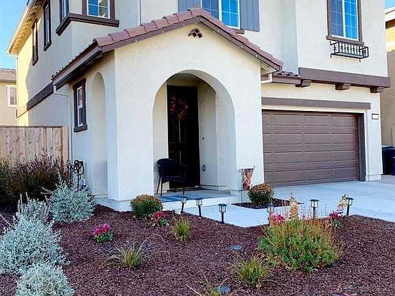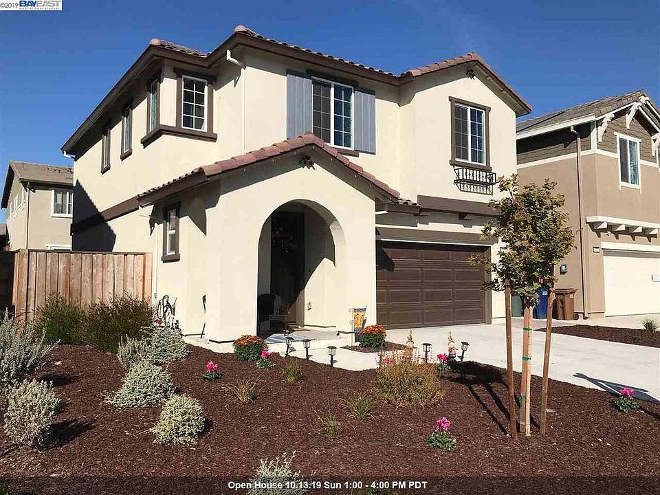This contemporary 2-year old home features 4 bedrooms, 2.5 baths and an energy-efficient design featuring a chef's kitchen w/stainless appliances, gas range, quartz countertops plus a large island with bar seating, accented with spindle light fixtures. Relax in the great room or unwind in the private yard with stamped concrete & low maintenance lawn. Also has leased solar system, convenient inside laundry room, contemporary flooring, ceiling fan & walk-in closet. Walking distance to elementary & middle schools and also the local sports park with baseball diamond, soccer field, BBQ area, play structure & lake. No HOA! Start packing & make it yours today!