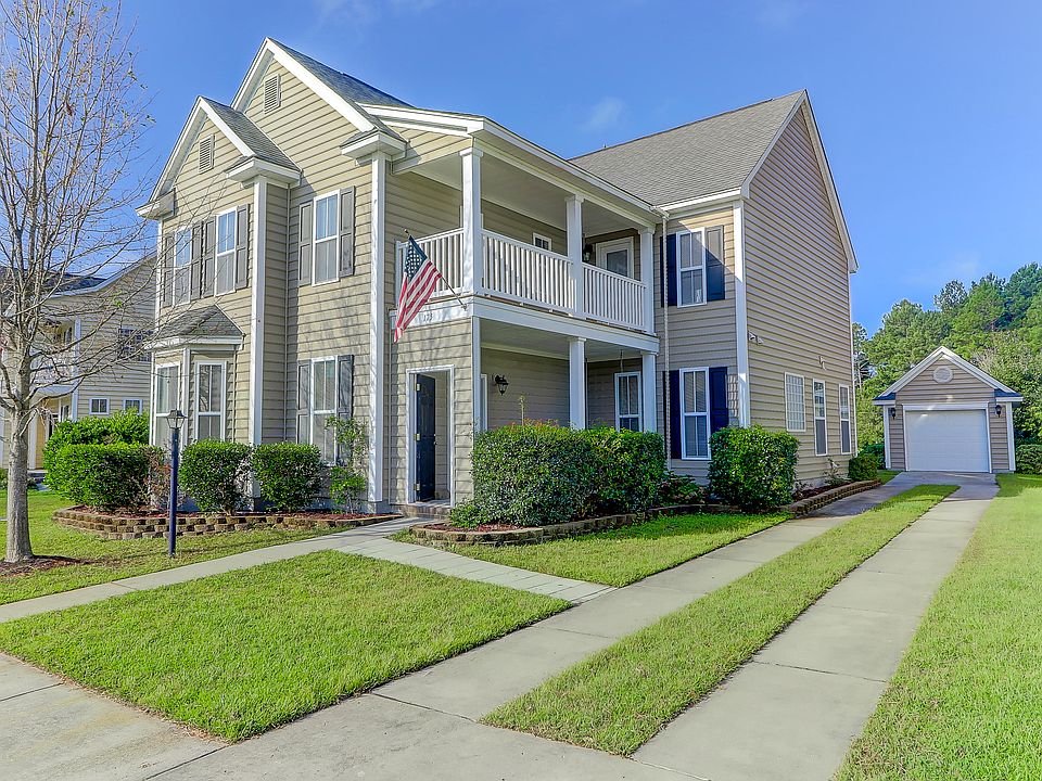 Don't miss this immaculate two-story home in the desirable Mason Park area of Weatherstone. Wonderful living space with 4 large bedrooms, including two REAL master suites - one up and one down - and three full baths and one half bath! This Charleston style home has a wonderful view of the largest pond in Weatherstone as well as wooded privacy from other homes. New HVAC installed in 2017 as well as upgraded kitchen appliances. Ceramic tile in kitchen and all wet areas. A home you can truly ''move right into''! The detached garage has a 12 foot work bench and multiple shelves and full service electricity for that ''handy man'' in the family. The community has an active amenity center with play park and swimming pool. Great area and location. This home will not last. Easy to show!