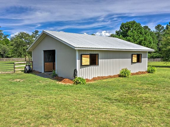 Relax on the wrap-around porch surrounded by peace, privacy, your horses & lush pastures at Fox Moore Farm! An equestrian oasis on 11 acres perimeter fenced, custom built (Mitch Johnson) home w/ energy efficient features, center aisle 5-stall barn, 5 paddocks, 200'x100' irrigated all-weather arena, hay/storage shed, RV hookup & more! Located 15-20 min. from downtown Aiken, local equestrian venues, Hitchcock Woods, shopping & dining. Ride for miles on the clay roads right from your gate! Home offers an open floor plan w/ vaulted ceiling, tile floors, solid surface counters, solar tubes in bathrooms, walk-in closets, large laundry w/ utility sink, ample storage space, attached 2-car garage w/ mini split HVAC, tankless on-demand water heater, wired for backup generator & sec. system w/ 4 cameras. Barn has matted stalls w/ fans, fly spray system, Classic Equine stall fronts, tack room & water. Gated entry w/ power, approx. 2.5ac wooded buffer at road, approx. 8.5ac Coastal Bermuda grass.