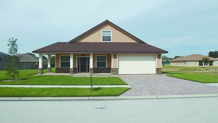 The Bentley 1-A ? Architectural 30 year shingles? Upgraded exterior elevation of home with front porch? Foam block insulation? Radiant barrier insulation on roof? Paver brick driveway and walks? Irrigation well? Quality ?Double Pane? windows? Complete security system? Pest Defense System (bug control)? Big bonus room with 1/2 bath? Windowed in Florida room with wet bar? All wood maple cabinets, with crown molding? Professional series appliances? 5? baseboards and wood window sills? Flo-Crete on porch and painted garage floor$219,900