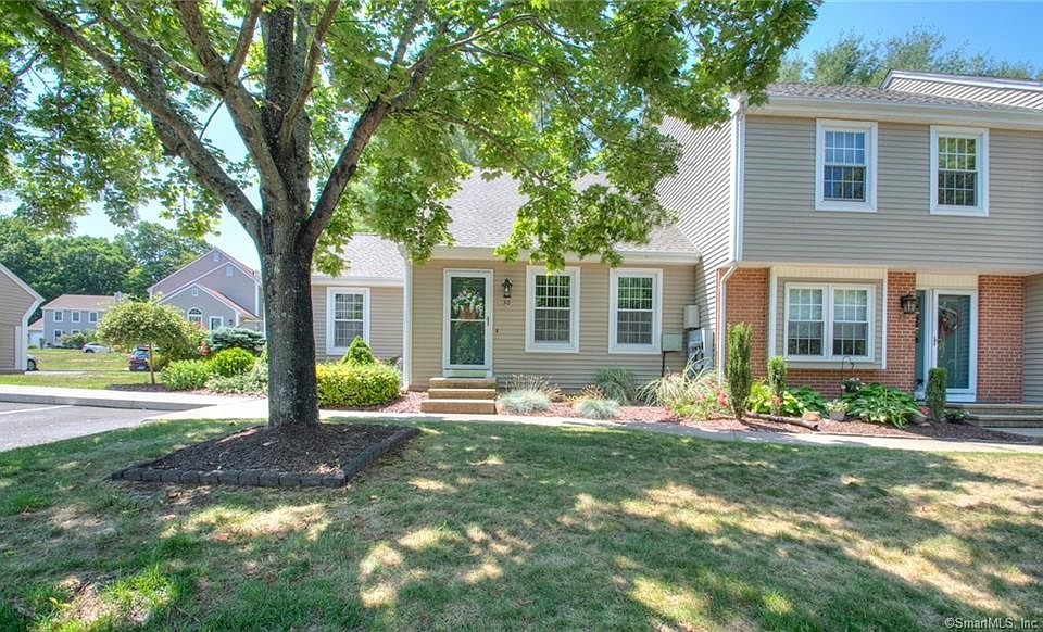 Youâll love the convenient location and beautiful setting of this nicely updated 2-bedroom, 2-bath end unit at Olde Towne Village just ¼ mile from downtown Southington! Tucked away in this quiet complex, this lovely unit features a living room with vaulted ceiling and a spacious eat-in kitchen with tons of storage, tile floor and stainless steel appliances. A generous bedroom with a large closet & full bath with stackable laundry complete the main level. Upstairs, a 2nd bedroom with full bath provides a private retreat for kids, house guests, home office or studio. This flexible floor plan is perfect for a variety of households, especially those who are looking for one floor living. Enjoy the outdoors on your private deck with views of the lightly wooded grounds or stay cool indoors with popular central A/C. The detached garage is a few steps away and a dedicated parking space is right outside your front door. Recent upgrades include a brand new roof (2020), new natural gas furnace (2017), storm door (2017). new water heater (2014), replacement windows (2014), professional landscaping & paver walkway (2013) + new deck (2013). This inviting, sun-filled home is the ideal starter home or a great option for downsizing-- schedule your showing today and start living the good life in this very desirable maintenance-free community!
