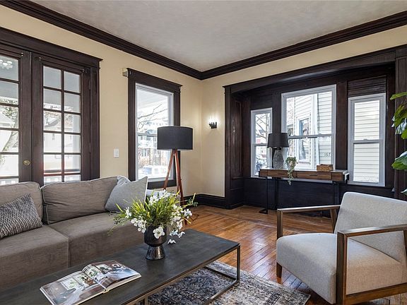 Historic Maplewood District Gem: Fully Renovated Colonial Awaits! Discover Your Dream Home - Completely Transformed and Move-In Ready! Step into this captivating nearly 2000 sq. ft. colonial residence nestled in the prestigious Historic Maplewood District. This meticulously renovated 4-bedroom beauty has been refreshed inside and out, offering the perfect blend of classic charm and modern conveniences. Stunning Renovations Throughout: Welcoming, private entry, open front porch perfect for morning coffee or evening relaxation. Refinished flooring and NEW plush wall-to-wall carpet ('25), bright, contemporary kitchen featuring NEW white cabinetry, stylish island, and premium stainless steel appliances, NEW designer countertops and modern light fixtures enhancing every space. Sophisticated open floor plan ideal for entertaining and everyday living. Timeless Character Meets Modern Convenience: Elegant formal dining room showcasing an exquisite coffered ceiling, bay window with bench seating, & a leaded glass decorative window. Spacious living room highlighted by gorgeous original woodwork & built-ins. Energy-efficient NEW thermopane windows ('25) throughout, beautifully UPDATED full bathroom with contemporary tiled walk-in shower, versatile full attic accessible from the hall - perfect for a home office or potential 4th bedroom expansion. Built-in linen closet providing essential storage space. Worry-Free Ownership: NEW roof ('24) ensuring decades of protection, NEW furnace and hot water tank ('24) for optimal efficiency, durable, aluminum siding, virtually maintenance-free yard offering maximum enjoyment with minimal effort. Located on a peaceful, sidewalk & tree-lined street, this home offers unparalleled convenience to expressways, lush parks, scenic walking/running trails, shopping destinations, entertainment venues, Kodak Center, Downtown, and the airport.