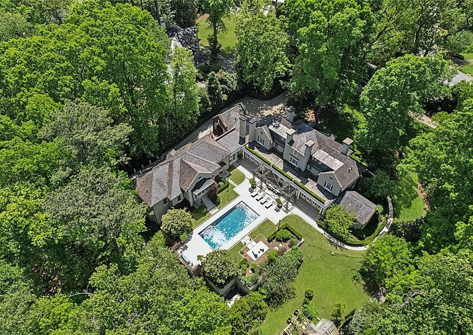 Spanning 2.68 acres, completely private and enclosed, this property is truly in a class of its own. Entirely unique and meticulously crafted by hand, it is exquisite on every level. Located in one of the very best neighborhoods, in one of the best parts of one of the best streets, where Blackland Road meets Tuxedo Road, you are surrounded by babbling brooks, rolling hills and tall trees, but also nearby the cultural and city conveniences of Buckhead, Atlanta. Designed by Philip Shutze, one of Atlanta's most beloved architects of the 20th century, and recently remastered by Stan Dixon, this home is a humanist architecture masterpiece reminiscent of the Italian villas that inspired Shutzes' work and that set the tone for Atlanta's most beautiful residential neighborhoods. Bespoke interiors, designed by internationally acclaimed interior designer Tammy Connor, include custom fabrics and drapery, intricate stone and wood work, naturally patinated brass fixtures and custom cabinetry with luxurious hardware. Delightful surprises are found throughout the home, including a cheeky prohibition bar, hidden guest rooms and smartly tucked away staff and nannies' quarters. Additional features that make the home so livable and adapted to today's lifestyle include a butler's kitchen, a sunny breakfast room with patio, an over-sized laundry room, multiple studies and home offices, and plenty of outdoor entertaining areas. Built solidly over a piece of natural granite and made modern with sustainable principles in mind, this home also lives lightly on the Earth, using a geo-thermal heating and cooling system, a water reclamation and storage system and building materials that will last for generations to come. An over-sized three car-garage with Tesla and Porsche electric car charging stations, HVAC, Control4 security system, a golf cart garage/workshop and additional parking for 9 vehicles completes the terrace level features. Beyond the garden style pool and lounge area, there is an English greenhouse, designed by Hartley Botanic, a whimsical children's treehouse and a glass cabin with a wood burning stove constructed with local reclaimed hardwoods. Each detail inside and out has been designed and executed flawlessly for a timeless, elegant and welcoming effect.