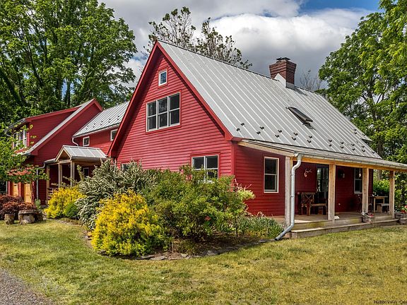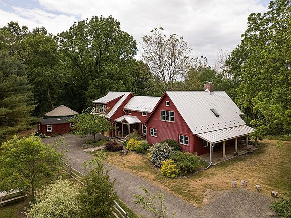 Located on one of the most desirable roads in Kerhonkson and situated in an idyllic country setting with sweeping pastoral, farm and mountain views as well as significant stream frontage, sits this lovingly renovated, turnkey post-and-beam farmhouse. For a buyer seeking a connection with nature, the 7.7 acres offer a plethora of options. The large front porch looks out to rolling farmland with grazing cows and horses in the foreground and the mountains beyond, a perfect spot for morning coffee and a sunrise. Accessible via French doors from the kitchen and sliding glass doors from the living room is a large deck with a firepit, perfect for outdoor gatherings with family and friends. The sound emanating from a large waterfall on the adjacent property shapes the outdoor experience. A long walking path leads through a beautiful forest to 400 feet of Mombaccus creek frontage which meanders along the back of the property. With a swimming hole and the sounds of water cascading downhill, it is the perfect spot for stream exploration, forest bathing, quiet contemplation or a respite from the summer sun. At various spots surrounding the house, the owners have added several perennial gardens with different flowers that bloom throughout the spring and summer as well as a productive vegetable garden. The owners have lovingly transformed the interior of the house by incorporating abundant custom and vintage details throughout. Highlights include a ceramic tiled entryway, an open kitchen and dining area with new Bosch appliances, a quartz sink, custom butcher block countertops, a cozy living room with a wall of windows, large fireplace with a custom mantle and vaulted ceilings, various skylights throughout and three renovated bathrooms outfitted with vintage elements. The layout and separation between the three bedrooms (plus a huge ensuite studio that could easily serve as a 4th bedroom/primary suite) along with three four-season heated and cooled outbuildings provide multiple configurations and endless possibilities. Properties with this mix of soul, flexible living space and outdoor possibilities don’t come along very often so whether you’re looking for a restorative weekend retreat or a fantastic full-time residence, it’s not to be missed. Just minutes away from Westwind Orchard, Arrowwood Brewery, Accord Market, Stonehill’s, Kelder’s Farm, Inness, and Minnewaska State Park, just a few of the many spots easily accessible from the property. Note that a complete list of renovations and improvements is available upon request.