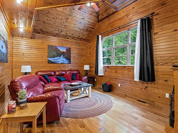 The secluded Snuggle Inn offers a cozy cabin experience for couples seeking a romantic getaway, whether for a honeymoon, anniversary, or just a relaxing escape. This charming 2-bedroom, 1.5-bathroom vacation rental accommodates up to 4 guests and is nestled near the breathtaking Natural Bridge State Resort Park, providing an array of outdoor activities. After a day of adventure, return to your private hot tub and soak in the peaceful surroundings of the lush green forest. The cabin is pet-friendly, allowing you to bring up to 2 furry friends along. Designed with comfort in mind, this cabin features a fully equipped kitchen with a standard and Keurig coffee maker, blender, and microwave. The living room boasts a zesty red leather couch and armchair, a gas fireplace, and a large flat-screen TV with Roku. With vaulted ceilings and natural light pouring in through large windows, the space feels open and inviting. The outdoor area includes a fire pit and a porch with a deck, perfect for stargazing and relaxation. Dogs are permitted with a $100 fee, with a maximum of 2 allowed. Dogs need to be crated if left alone at the property. Limited parking is available, and vehicles exceeding 2 should park at the local park and ride and carpool to the cabin. Situated in the lower portion of a mountain area, this beautiful cabin is surrounded by a variety of trees for ultimate privacy. The famous Nada Tunnel entrance to the Red River Gorge is just 10 minutes away, offering countless hiking trails, rock climbing, fishing, canoeing, kayaking, and more. Nearby attractions include the Natural Bridge State Resort Park, Mill Creek Lake, and various zip-lining and rock climbing opportunities. Local dining options include Miguel's Pizza, Red River Rockhouse, and Sky Bridge Station. Check-in begins at 4 pm and check-out is at 11 am. Arriving early or departing late will result in additional charges. Smoking is only allowed outside. No events, parties, or large gatherings are permitted. There is camera surveillance in Birch Hollow and Sundance for security purposes. A 4WD is highly recommended as the cabin is located up a small gravel hill. Firewood is not provided and should be purchased locally. Gas fireplaces are inactive from April 15 to October 15.