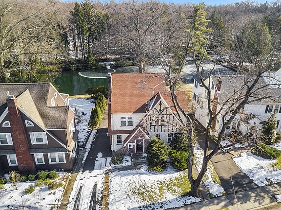 Welcome home to this beautiful tudor style colonial overlooking Rocky Glen Lake and acres of dedicated parkland. It's only once every decade or so that one of these special, private lake association homes come on the market. The entry foyer leads to a beautiful living room with fireplace and hardwood floors that continue into the banquet sized dining room. Leaded glass windows grace these rooms. Enjoy casual meals with your view of the lake in the charming breakfast room, surrounded by windows. A cozy den off the living room makes a perfect playroom or home office. The large kitchen and powder room complete the first level. Upstairs you will find 3 spacious bedrooms, one with its own enclosed porch facing the lake. Continue upstairs to a huge, bright finished space - great for a guest room or additional family room, with room for even more expansion. The lower level of this magnificent home boasts 8 1/2 foot ceilings giving you endless potential with a quarter bath and wine cellar already in place! Additional features include a "2 1/2" car attached garage, newer roof (2014) and driveway (2018), updated windows and siding. The private lake association consists of 14 homes with a yearly association fee of $500. Swim, boat and enjoy this summer!