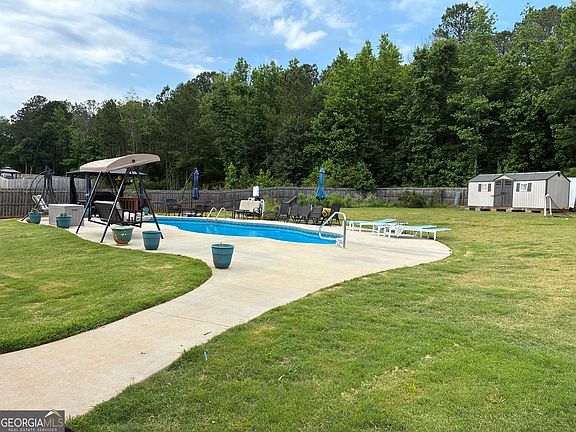 A gorgeous contemporary home, built in 2021 and nestled on a spacious 1acre lot in the desirable Bridgemill subdivision. This thoughtfully designed home offers all the peace of mind of a newer home with the benefit of personal touches such as the backyard with its outdoor entertainer's paradise complete with privacy fence, in-ground saltwater pool, and a covered gazebo with custom built bar perfect for a pool side barbecue, entertaining and relaxing with a cup of coffee in the morning. Key Highlights Spacious & Versatile Living * 5 bedrooms (including a convenient main-level guest suite) and 3 full baths, spread across 2,402 sq ft of beautifully finished living space. * Open-concept family room and dining area-ideal for seamless entertaining and everyday life. * Upper-level laundry room and ample closet/storage space. Elegant Interior Finishes * Designer features such as built-in bookcases, custom closet units, and a luxurious soaking tub in the master bath. Resort-Style Outdoor Living * A sparkling saltwater in-ground pool set within a privacy-fenced backyard, perfect for summer gatherings. * Expansive, level green space with mature fruit bushes (blueberry, raspberry and blackberry)-a blank canvas for play, gardening, or relaxation. * Two outbuildings on-site, ideal for storage, workshop, or hobby space. Location * Peaceful large yard combined with easy access to schools, community amenities, and the charm of Covington's historic core-a charming city known for its picturesque square, community events, and film-industry appeal.